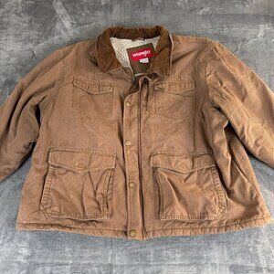 Wrangler Men's 3XL Sherpa Lined Canvas Jacket Barn Coat Brown Chore Utility