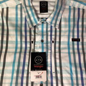 Wrangler Men's All Terrain Gear Horizon Short SL Shirt Size XL White Blue New