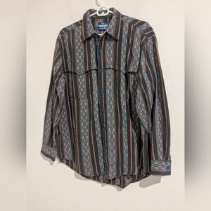 Wrangler Men's Colorful Embroidered Stripe Brushpopper Button-Up Shirt.