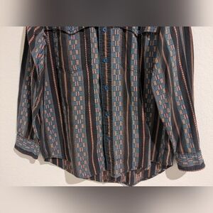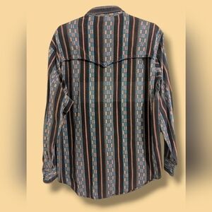 Wrangler Men's Blue Embroidered Stripe Brushpopper Shirt Western Retro 90s