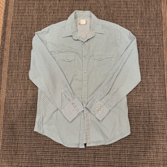 Wrangler Men's Blue Patterned Button-Down Shirt