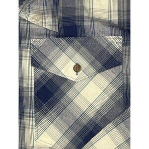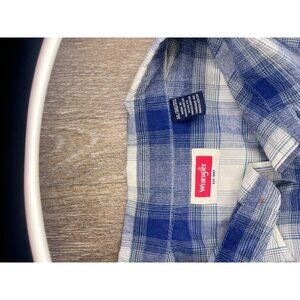 Wrangler men’s long sleeve button-up shirt in classic blue plaid. Size 3XL, comfortable relaxed fit with a timeless western-inspired look. Great everyday shirt for casual wear, work, or layering—clean pre-owned condition with no major flaws noted.