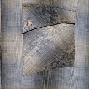 Wrangler Men's Blue and Gray Plaid Button Down Shirt