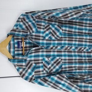 Wrangler Mens Blue,Black Plaid Western Yoke Snap Button Down Shirt Cowboy Sz.L