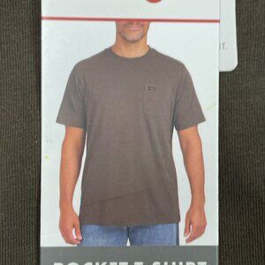 Classic Wrangler Pocket T-Shirt in brown. Relaxed fit with a crew neck. Durable cotton blend material, featuring a single chest pocket and short sleeves.