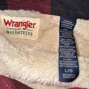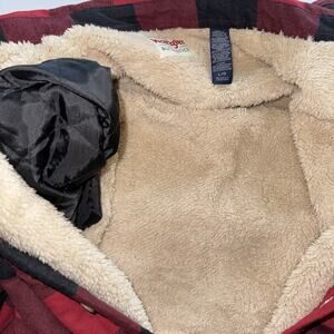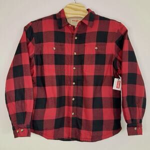 Wrangler Mens Buffalo Plaid Sherpa Lined Shirt Jacket Pockets Red Black Size L