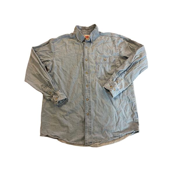 Wrangler Men's Casual Button-Down Shirt Light Blue Large Cotton Rugged Wear