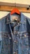Classic men’s denim jacket with button closure. Features dual chest pockets. Ideal for layering.