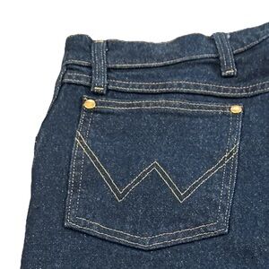 The Wrangler Men's Cowboy Cut Bootcut Stretch Regular Fit Jeans in size 38 x 30 offer a classic and comfortable option for any man looking for durable and stylish denim. Featuring a dark wash and bootcut style, these jeans are perfect for everyday wear and can easily be dressed up for a more polished look. The added stretch fabric ensures a comfortable and flexible fit, making them a versatile addition to any wardrobe.