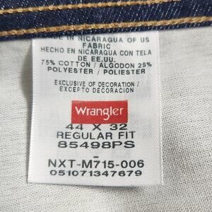 Wrangler Men's Dark Wash Flex Fit Waist Regular Fit Jeans Size 44 X 32 Zip Hook