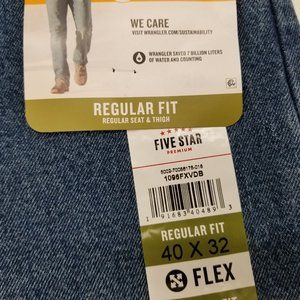 Wrangler Men's Five Star Blue Jeans Regular Fit Flex Denim 5 Pocket Sz 40x32