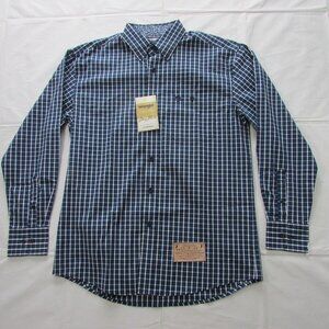 Wrangler Men's George Strait Long Sleeve Relaxed Fit Plaid Button Shirt Navy
