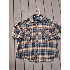 Wrangler Mens Heavy Weight Flannel Pearl Snap Size 3x Orange Black Brown