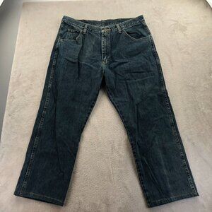 Wrangler Mens Jeans 38x30 Regular Fit Blue Dark Denim Cotton Straight Leg Casual