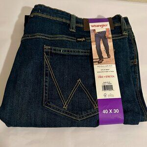 Wrangler Men's Jeans Size 40X30 Dark Blue Free To Stretch Regular Fit Denim NEW