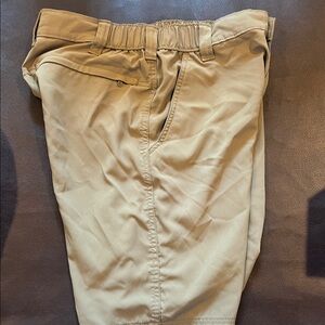 Classic Wrangler cargo shorts in khaki. Features multiple pockets for convenience. Ideal for everyday wear.