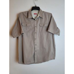 Wrangler Men's L Button Up Beige Short Sleeve Shirt