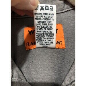 Has been laundered and ready to wear. Bought to resell. Do not know how much flame retardant left but pretty sure most men doing laundry do no use fabric softener or starch their work shirts. Those are the two things that affect the flame retardant.
