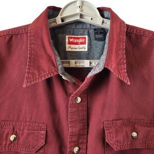 Wrangler Men's Large All Cotton Button Down Shirt 2 Pockets Burgundy