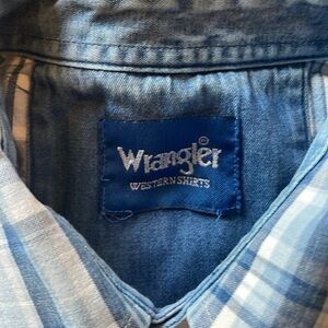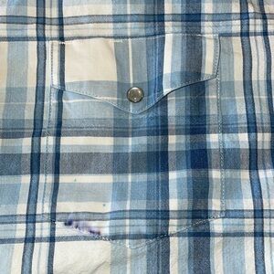 Size L BEAUTIFUL Blue Plaid Heavy Material Shirt with Iconic Pearl Snap Buttons in GREAT CONDITION, has small pen mark on Pocket (see picture).
