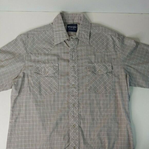 Wrangler Mens Large Short Sleeve Brown-ish Plaid Pearl Snap Shirt