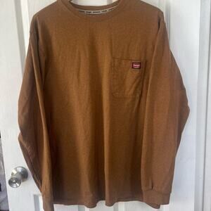 Wrangler Men's Long-Sleeve Heavyweight Workwear Pocket Crew T-Shirt with Front Pocket. Men’s Size XL (46-48) in Brown Duck. Great condition, just needs to be ironed. #cotton #western #carhartt