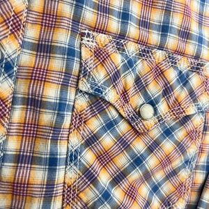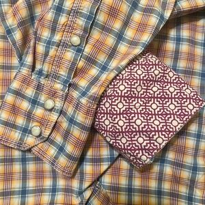 Wrangler Mens M Button Up Shirt Multicolor Plaid Pearl Snap Long Sleeve Western