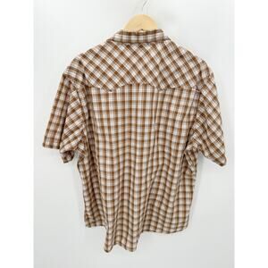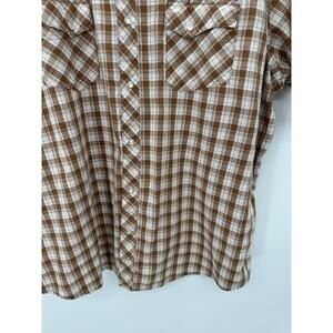 Wrangler Mens Pearl Snap Shirt Size XXL Brown Plaid Short Sleeve Country Western