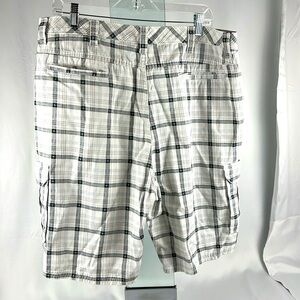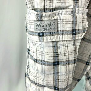 Wrangler Men’s Plaid Cargo Shorts White Gray Blue Size 38