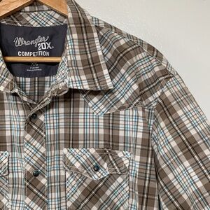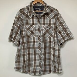 Wrangler Mens Plaid Short Sleeve Pearl Snap Button Down Shirt Size XXL