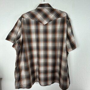 Wrangler Mens Plaid Snap Front Western Shirt 2XL Brown Short Sleeve Easy Care