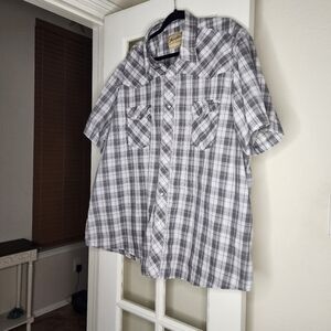 Wrangler Men's Plus Short Sleeve Pearl Snap Plaid Casual Button Up.