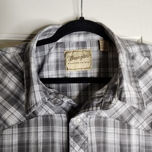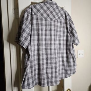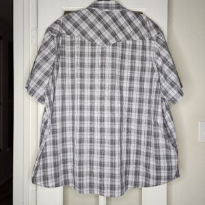 Wrangler Men's Plus Short Sleeve Pearl Snap Gray Plaid Casual Button Up 3X