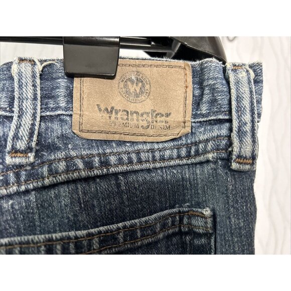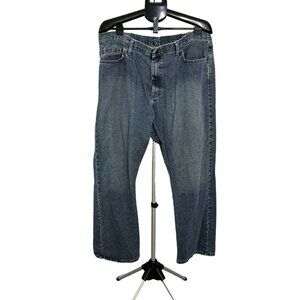 Wrangler Mens Relax Straight Jeans 42x30 Dark Wash Blue Denim Wide Leg Distress