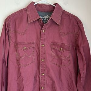Wrangler Men's Retro Burgundy snap buttons long sleeve button down Shirt medium