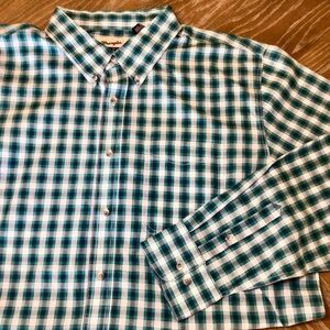 Wrangler Men’s Riata Green/White Plaid Long Sleeve Button Up Shirt Size XXL