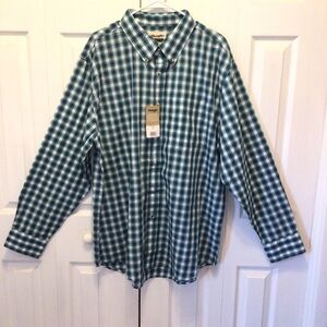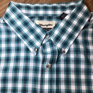 Wrangler Men’s Riata Green/White Plaid Long Sleeve Button Up Shirt Size XXL. New with tags from smoke free home.