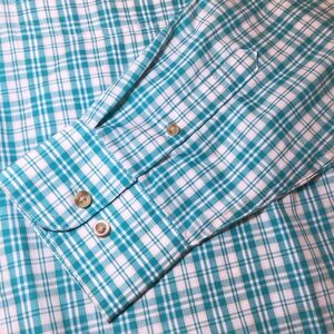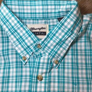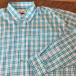 Wrangler Men’s Riata Turquoise Blue Plaid Long Sleeve Button Up Shirt Size XXL. New with tags from smoke free home.