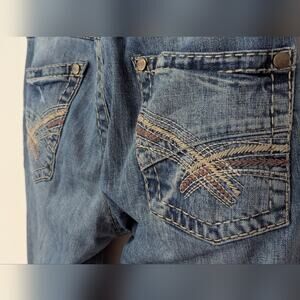 Comfy relaxed bootcut fit with really nice thread stitching detail on the back pockets.