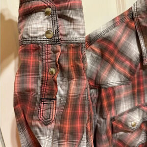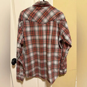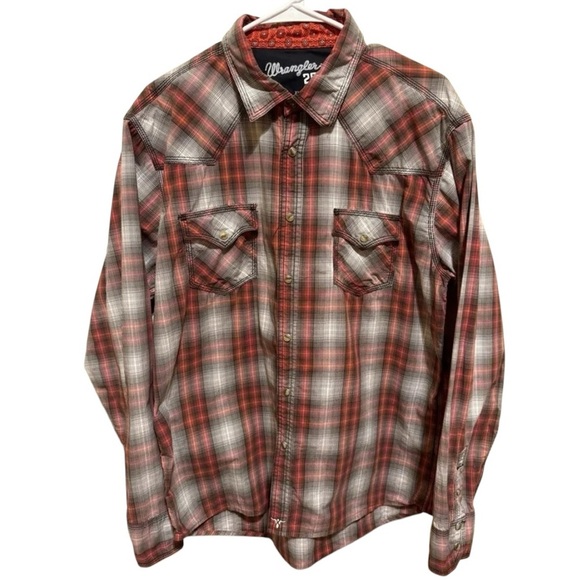 Wrangler Men’s Shirt Snaps Long Sleeve Red Black Plaid Used but Good Condition Size XL