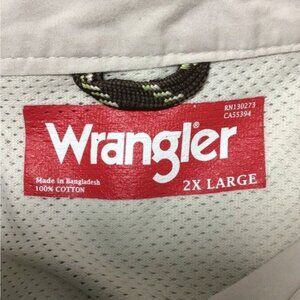 This Wrangler Men's Short Sleeve Button Down Performance Shirt in Khaki, Size 2XL, combines comfort and style. Made of cotton, it's perfect for an active outdoor lifestyle, work, or casual wear.