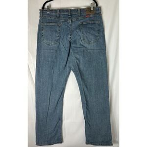 Wrangler Mens Size 36X32 Blue Comfort Relaxed Fit Mid Wash Demin Straight Jeans