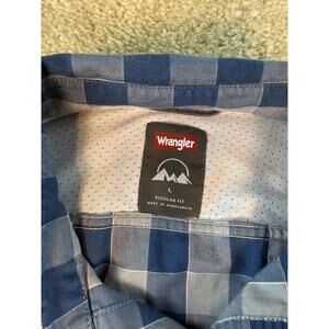 Wrangler Mens Size L Shirt Performance Utility Check Blue Long Roll Tab D274