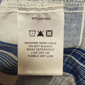Washed per label instructions, stored in a smoke-free and pet friendly environment.