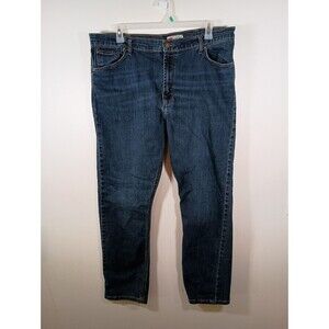 Wrangler Mens Slim Straight Denim Medium Wash Zip Blue Jeans Size 42 X 30