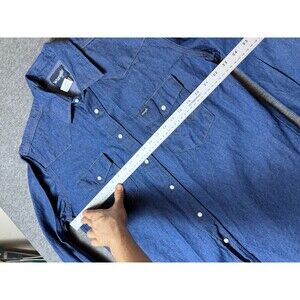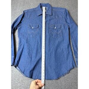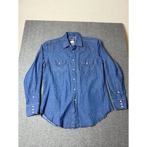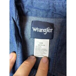 Wrangler Men’s Sz L Denim Western Pearl Snap Long Sleeve Distressed Farm Work