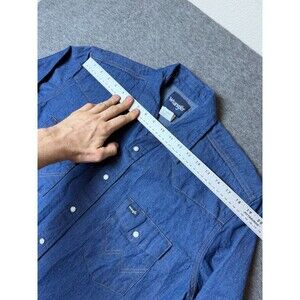 Wrangler Mens Sz L Denim Western Pearl Snap Long Sleeve Distressed Farm Work