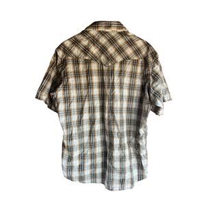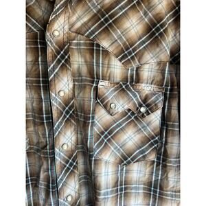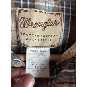 Wrangler Men's Vintage 80s Pearl Snaps Brown Plaid Size Large Shirt 2 Pockets