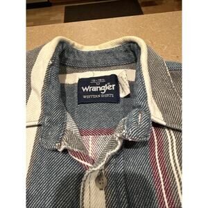Wrangler Men's Vintage Western Button-Up Shirt, Medium Striped Long Tails Cotton