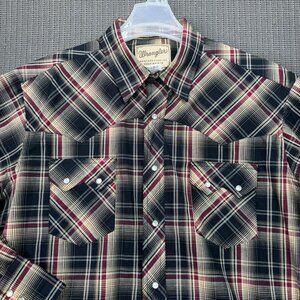 Wrangler Mens Western Fashion Snap Shirt XL Plaid 55% Cotton 45% Polyester
